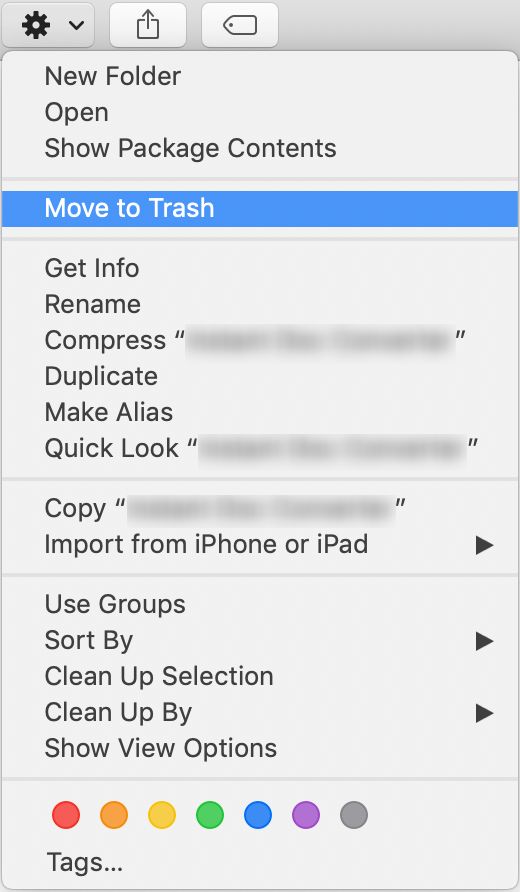 Click the Settings icon and select "Move to Trash" for deleting