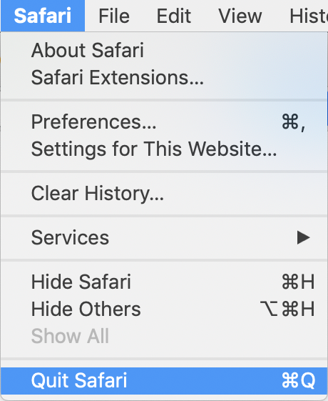 Click "Safari" and select "Quit Safari"
