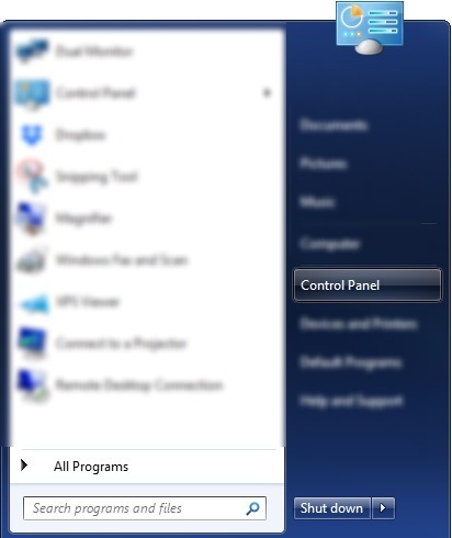 Click or Search for "Control Panel"